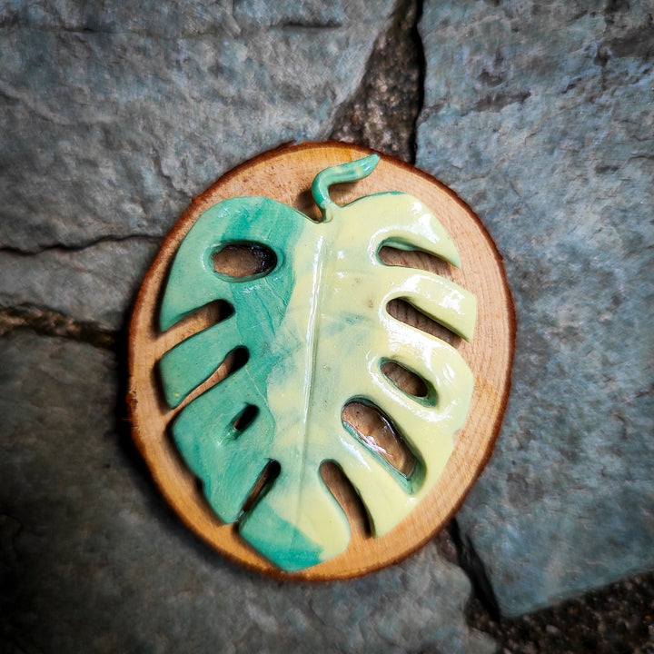 Este imán está hecho y pintado a mano con amor y atención al detalle, inspirado en las exuberantes hojas de la Monstera deliciosa. Es una pequeña escultura única que captura la belleza salvaje de la selva tropical.