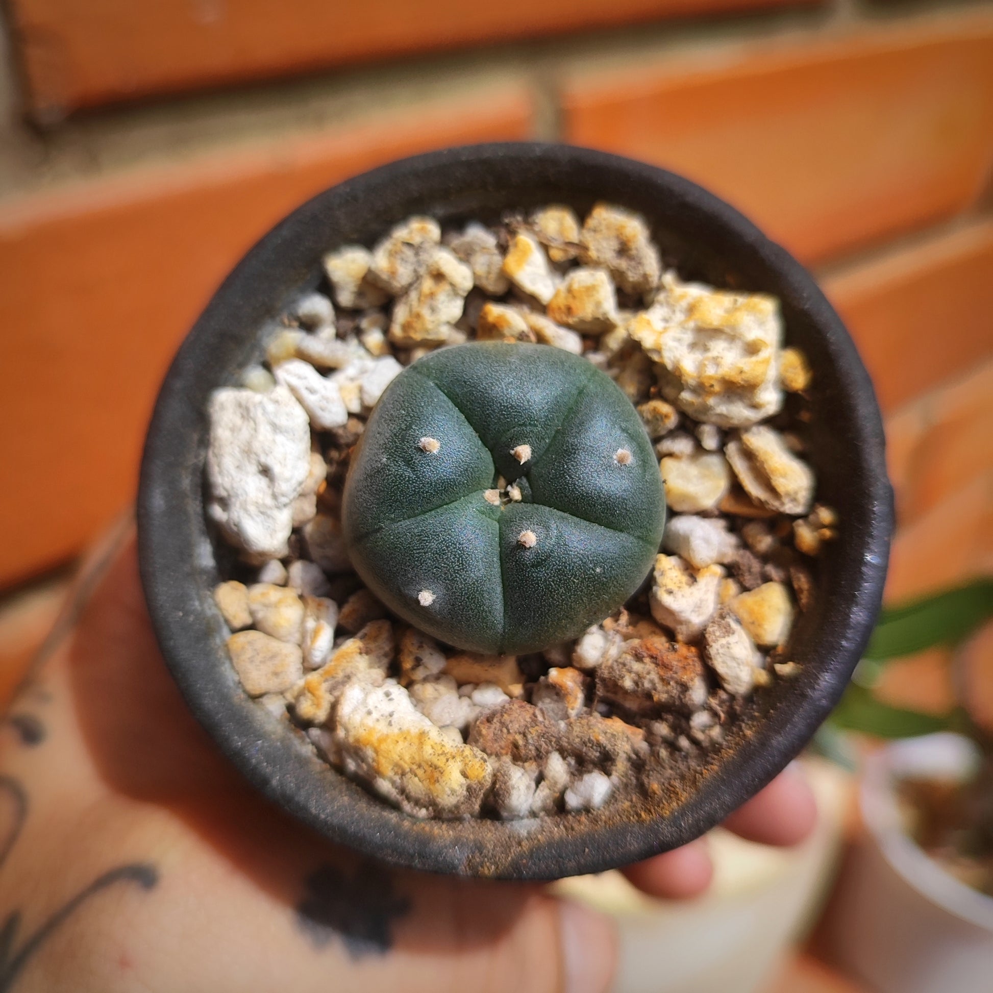 Lophophora Williamsii #26 en matera pequeña de barro