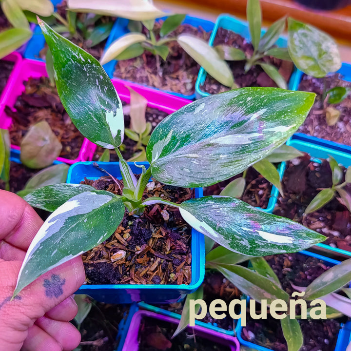 Añade el Philodendron 'White Wizard' a tu colección y disfruta de su exótica belleza, una planta que transformará tu hogar con su espectacular juego de colores y su encanto tropical.
